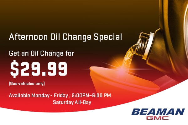 *Gas vehicles only. Plus tax and applicable fees. Includes up to 5 quarts of standard oil and filter. Synthetic oil extra. Valid only for appointments between Monday -Friday , 2:00PM–6:00 PM and Saturday All-Day during normal business hours. May not be combined with other offers. Must present coupon at time of service write-up. See dealer for details. Offer Expires 04/30/2026.