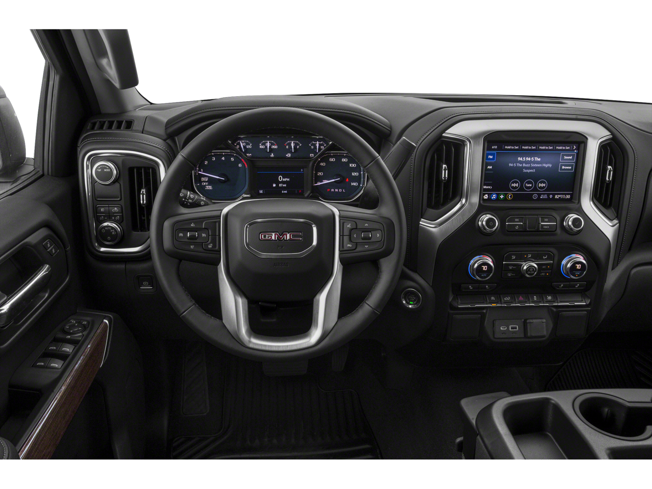 The Sierra 1500 Elevation's sleek and bold exterior, complete with a body-color surround grille and 20-inch black gloss painted aluminum wheels, exudes a commanding presence on the road. Step inside and you'll be greeted by a premium audio system, Apple CarPlay/Android Auto integration, and a host of advanced safety technologies, including Keyless Open & Start and a Theft Deterrent System.